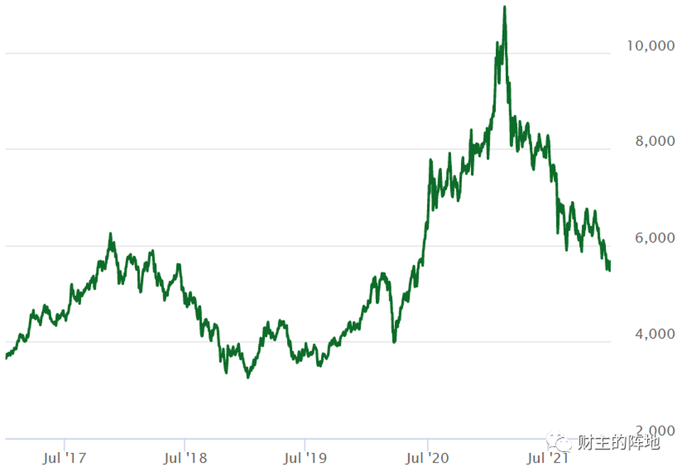 過去一年來,恒生科技指數成分股和其他中概股一樣,受到中美兩國政策的持續擠壓,可謂是老鼠進風箱,兩頭受氣,來回被爆錘。指數從最高1.1萬點暴跌至目前的5600點左右,比起剛剛成立時的7000點還要低。某種程度上說,風險已經釋放得差不多了。