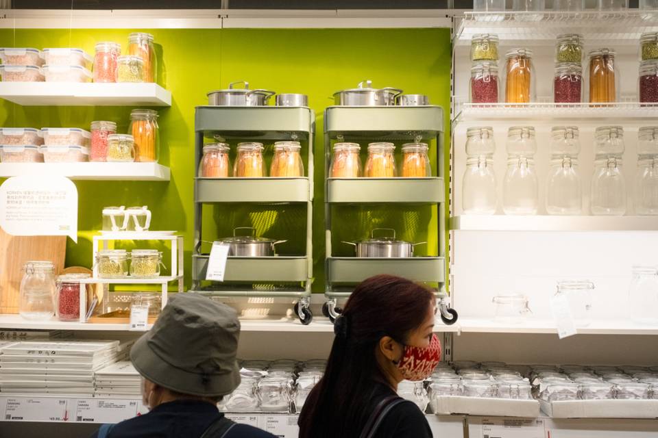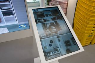踏進店内,看見各類收納工具,有不同大小、質感的儲物箱。客人亦可以於數碼互動屏幕內瀏覽各種風格的家居佈置,「預覽」產品放在家中情況。互動屏幕旁邊則是售賣瑞典食品的位置,雖然店鋪面積小,但自家品牌食品一應俱全,現場亦設有櫃位供職員協助規劃及訂購家具。