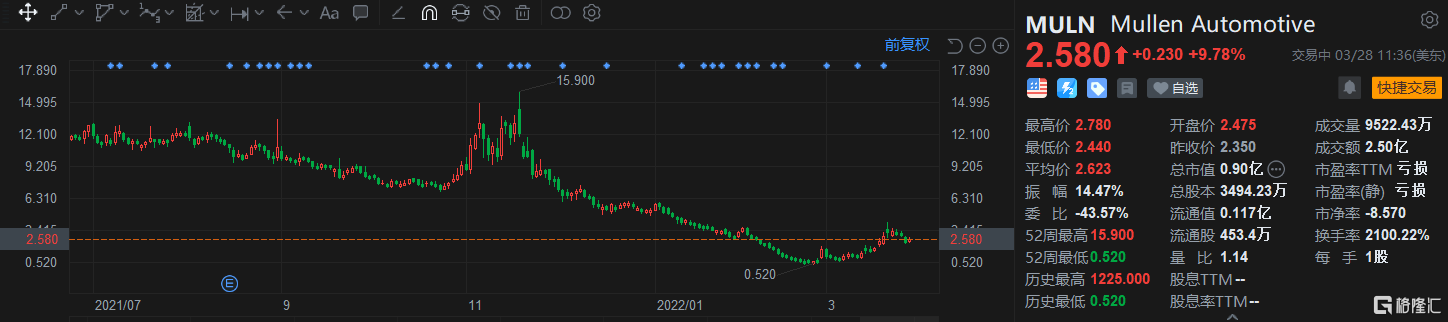 美股異動 | Mullen Automotive(MULN.US)漲9.78% 公司強化資產負債表