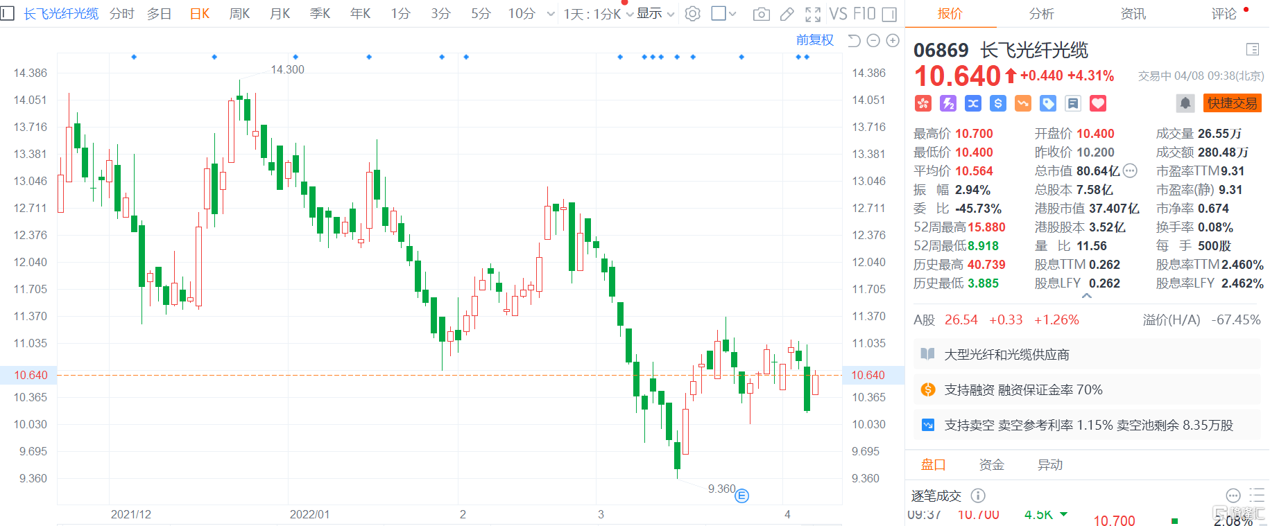 港股異動丨長飛光纖光纜(6869.HK)漲逾4% 擬收購博創科技控制權