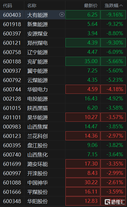 格隆匯4月18日丨煤炭股走低,大有能源、新集能源、鄭州煤電跌超9%、安源煤業跌超8%,遼寧能源跌超6%,兗礦能源、冀中能源、雲煤能源跌超5%,華銀電力、電投能源跌超4%,陝西黑貓和陝西焦煤等跟跌。國家發展改革委價格司召開專題會議,研究明確煤炭領域哄抬價格違法行為認定標準,煤炭、電力行業重點企業及有關行業協會參加會議。 會議指出,煤炭是重要基礎能源,做好煤炭保供穩價工作意義重大。在現有法律法規框架下,研究明確煤炭領域哄抬價格違法行為的具體認定標準,有利於引導煤炭經營者合法經營,維護煤炭市場正常秩序。