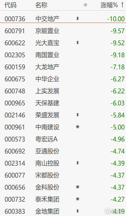 格隆匯4月20日丨中交地產跌停,京能置業、光大嘉寶和南國置業逼近跌停,大龍地產跌超7%,中華企業、上實發展、天保基建跌超6%,榮盛發展、中南建設跌超5%,金地集團跌超4%。中國央行將一年期和五年期貸款市場報價利率(LPR)分別維持在3.70%和4.60%不變,已連續三個月維持不變。彭博此前調查顯示,1年期和5年期LPR在連續兩個月持穩後有望分別調降5個基點;中信證券此前稱4月或5月的LPR利率有一定可能會調整。