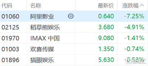港股異動 | 電影概念股集體下跌 稻草熊娛樂跌近5%