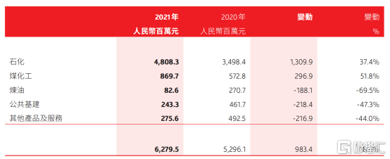 拆分具體業務來看,石化業務佔總營收比例最高,達到77%,2021年實現營收48.08億元,同比增長37.4%。其次為煤化工業務,佔總營收比例為14%,去年該項業務實現營收約8.7億元,同比增長51.8%。