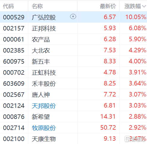 格隆匯5月16日丨廣弘控股漲停,正邦科技、新五豐、正虹科技、唐人神、天邦股份、新希望、牧原股份等跟漲。國家統計局5月14日公佈2022年5月上旬流通領域重要生產資料市場價格變動情況,其中生豬(外三元)價格為14.9元/千克,環比上漲2.1%,與3月下旬豬肉價格低位時相比每千克上漲3元。豬肉價格上漲,讓生豬養殖企業的“底氣”逐漸充足起來。牧原股份、温氏股份、新希望、天邦股份等養豬企業近期陸續公佈的4月份銷售數據顯示,各家經營數據逐漸向好。
