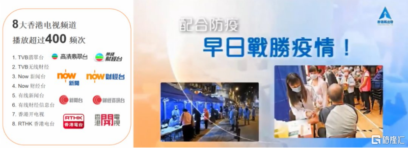 同時,雅仕維也通過策劃製作防疫宣傳片,助力“香港再出發大聯盟”在全港多個重點户外、LED、港鐵、九巴超過150個交通媒體以及在TVB翡翠台、TVB無線財經等8家在線電視台播放超過400次,並在抖音及微信視頻號獲得報道及二次傳播,引發了廣泛的關注與正面反響。