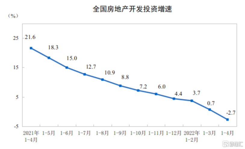 供給方面,根據國家統計局的數據,今年1—4月份,全國房地產開發投資39154億元,同比下降2.7%;其中,住宅投資29527億元,下降2.1%。