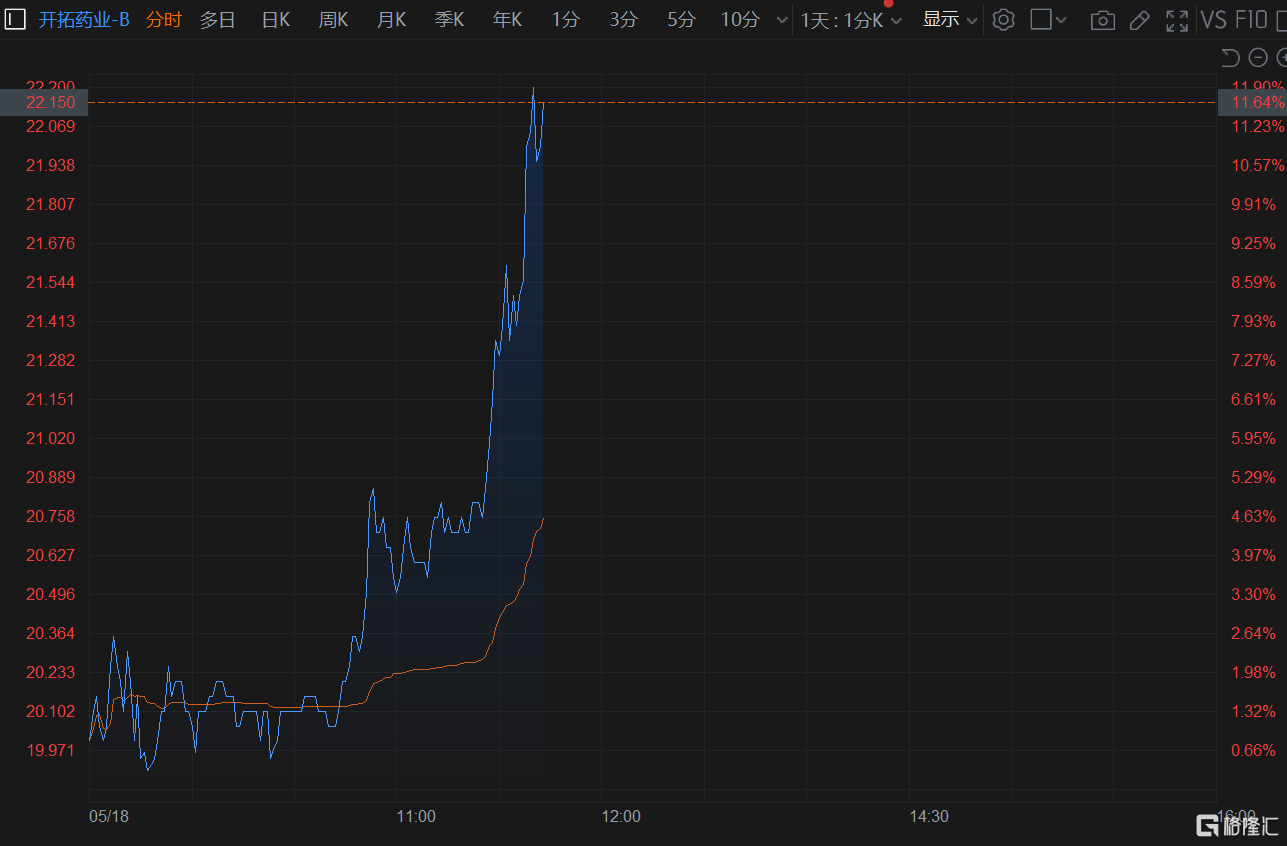 港股異動 | 利好疊加 開拓藥業-B(9939.HK)大漲超11%