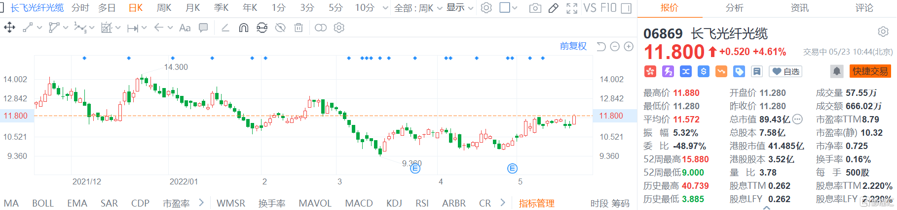 格隆匯5月23日丨長飛光纖光纜(6869.HK)快速拉昇,現報11.8港元,漲幅4.6%,總市值89.4億港元;A股漲3.9%,報27.75元。5月20日,中國聯通發佈《2022年中國聯通本地網光纜集中採購項目中標候選人公示》共12家廠商中標。天風證券指,光纖光纜行業正經歷從低谷/底部回升的初期階段,供求將持續改善,行業有望迎來新一輪景氣週期,光纖光纜盈利能力有望持續提升,建議關注長飛光纖(港股和A股)。