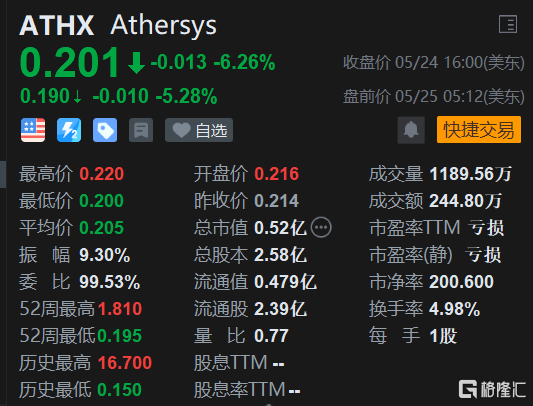 美股異動 | Athersys(ATHX.US)盤前跌超5% 有機構下調其目標價至0美元