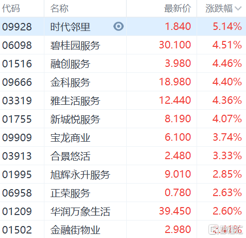 港股異動 | 物業管理板塊快速拉昇,碧桂園服務漲逾4%