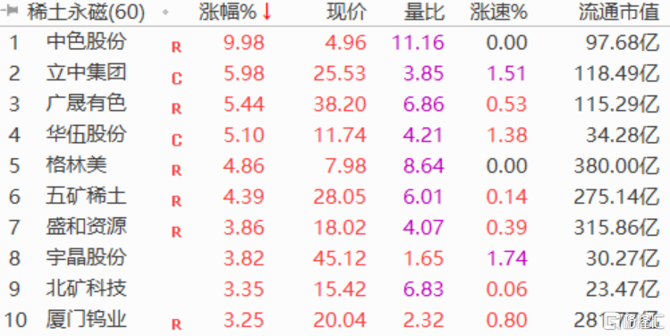 格隆匯6月2日丨稀土概念持續拉昇,中色股份漲停、立中集團漲近6%,廣晟有色、華伍股份漲超5%,五礦稀土漲4%。中金公司認為,前期稀土板塊回調本質在於稀土價格高漲引致政策壓制和下游成本傳導不暢,再疊加疫情影響,導致基本面和估值承壓。但考慮到長期新能源車和工業電機節能環保需求強勁,短期下游需求景氣度有望迴轉,稀土上游有望受益於價格回升和產銷放量,下游磁材公司受益於高端磁材產銷回暖和成本壓力轉嫁,隨着磁材價格合同重置,有望迎來量價齊升。