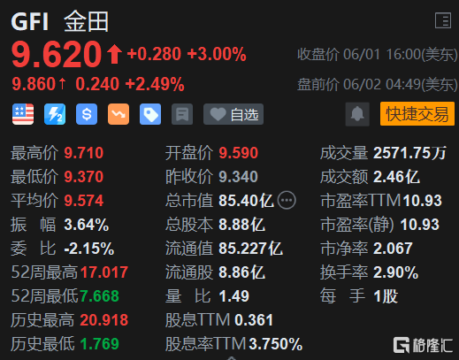 美股異動 | 金田(GFI.US)盤前漲2.49% 將成為全球第四大黃金生產商
