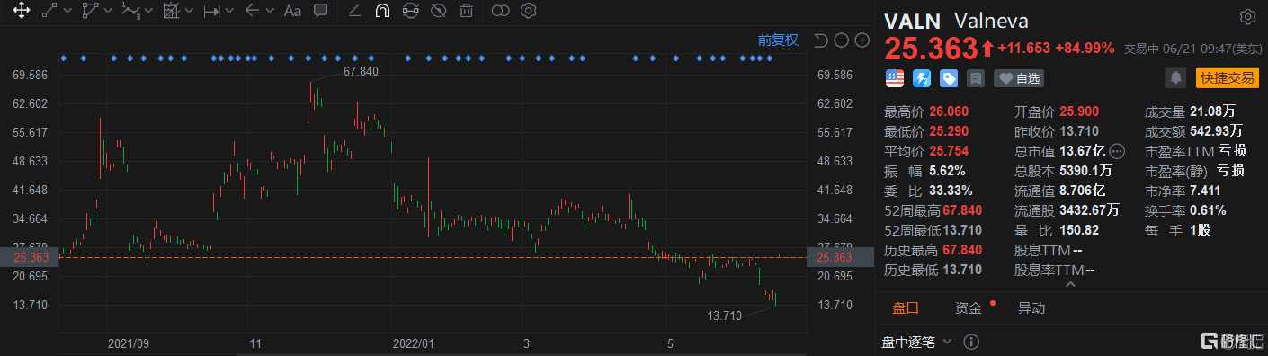美股異動 | 法國疫苗公司Valneva(VALN.US)飆升85% 輝瑞收購公司8.1%股權