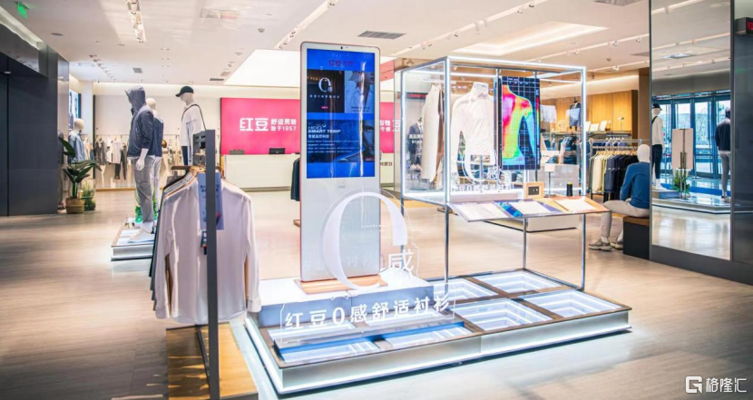 在經濟下行週期,紅豆股份恰逢其時,拋出“高端化”轉型升級,以抓住中高端消費客羣穩定的消費力。以零售終端為突破點,紅豆股份對其線下門店進行了脱胎換骨的改造,將服裝門店搖身一變為網紅“打卡點”。