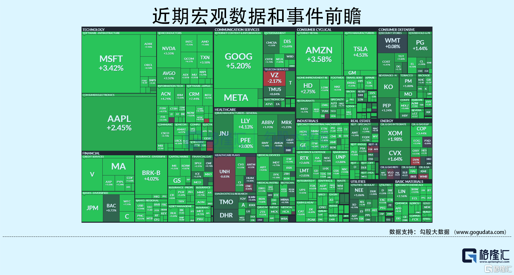 經濟數據令市場對美聯儲加息預期進一步降温,市場定價顯示,投資者開始將今年12月之後加息的可能性排除在外,預計今年底以前達到加息高峯,並考慮明年降息的可能。美聯儲披露所有大銀行都通過年度壓力測試,認為銀行有強大的資金池抵禦衰退,銀行股強勢上揚,帶動金融板塊整體上漲3.7%。