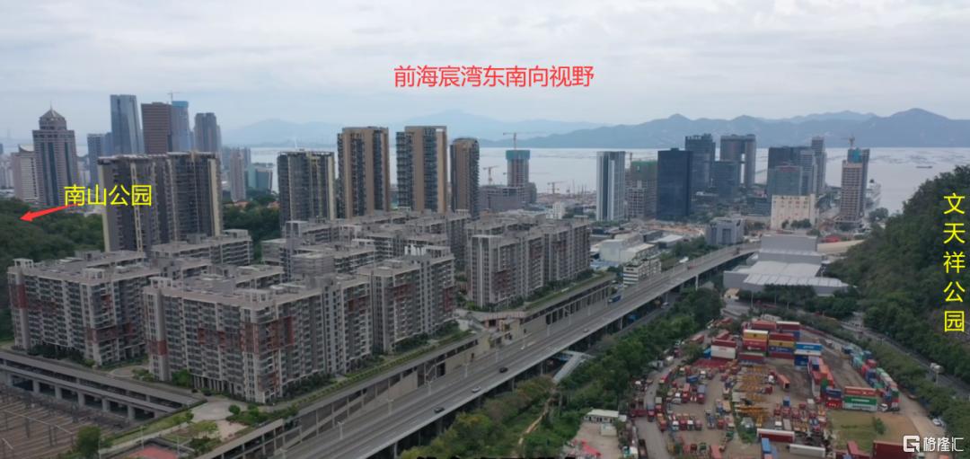 項目的正南向是文天祥公園,最高峯海拔213米,而前海宸灣的最大建設高度也是兩百米左右,所以正南向看海的視野是比較受限的。