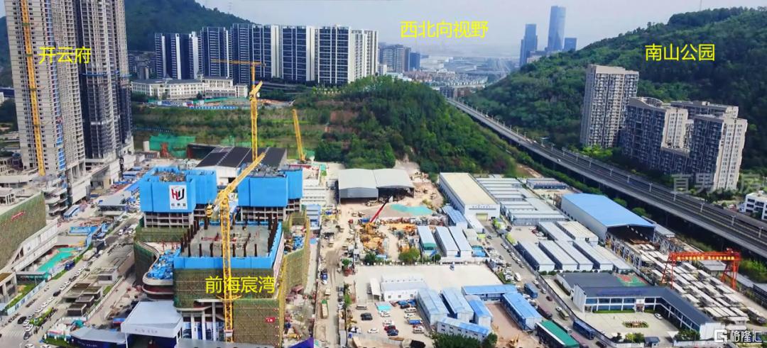 正西向是一字排開的開雲府和赤灣總部大廈,項目部分視野也會被開雲府和赤灣總部大廈遮擋,而且在開雲府朝西的前方未來預計還會有琅玥家園,視野也可能會被進一步遮擋。