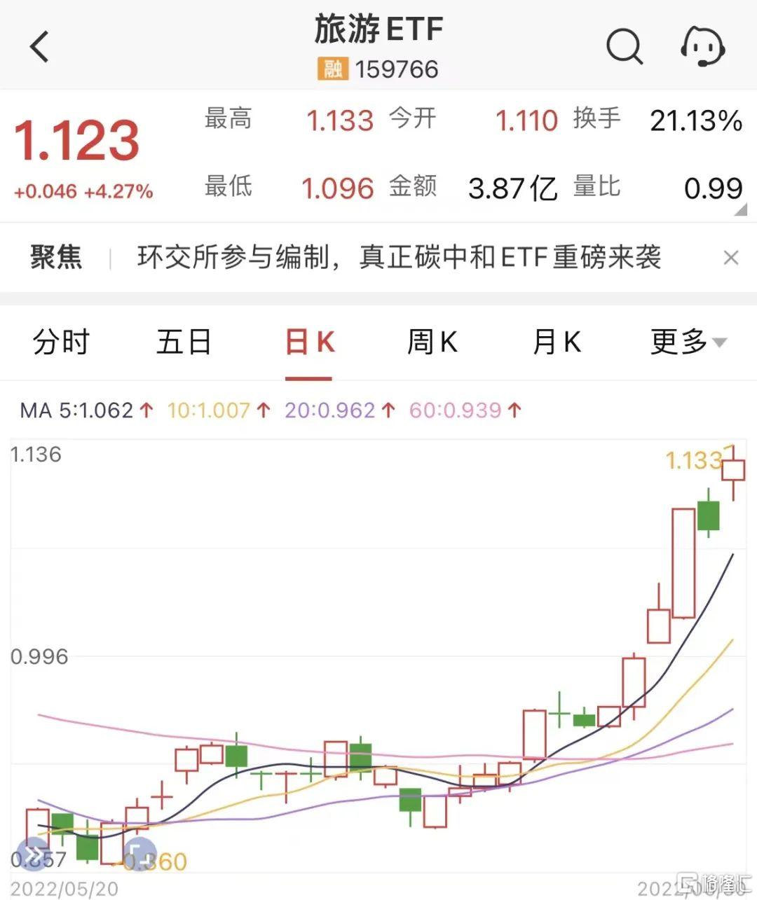 在發佈消息的當天,港股一眾沸騰,旅遊ETF也是趁勢大漲5.8%。