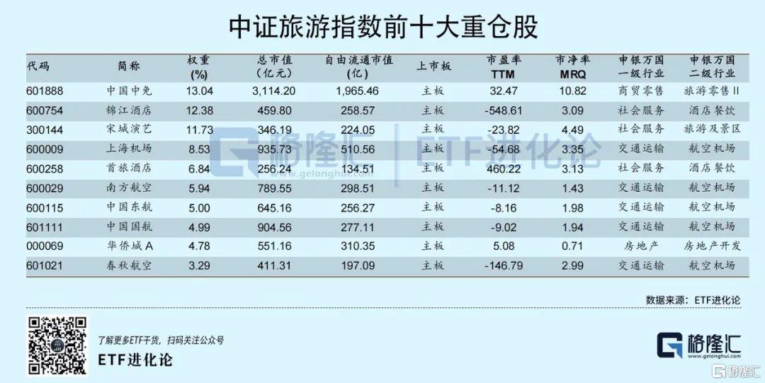 目前市場上共有2只旅遊相關ETF,統一跟蹤中證旅遊主題指數,其30只成分股涉及及免税、酒店、航空、機場、景點等旅遊產業鏈的上市公司。