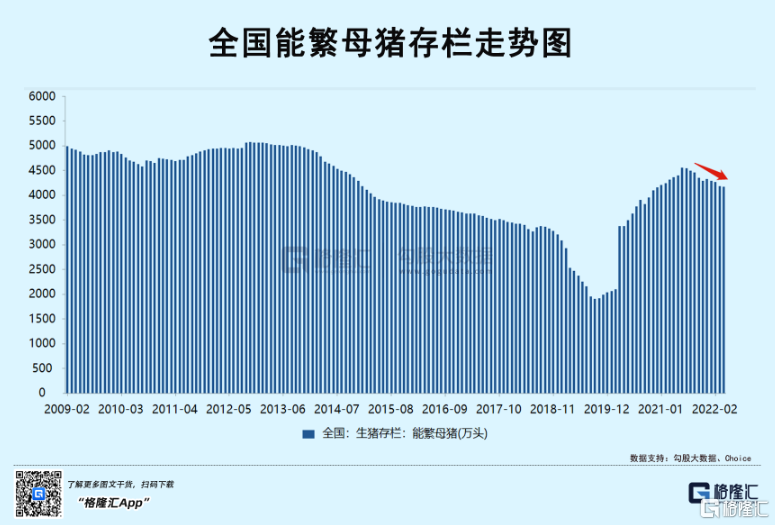 去年5月,出欄豬價跌破20元,即跌破行業平均養殖成本線,後到了7月,仔豬價格也跌破成本價。全行業陷入集體虧損狀態,可以推斷市場開始收縮能繁母豬的產能(農業農村部去年6月數據見頂,數據值本身參考意義不大,但趨勢仍有參考意義)。