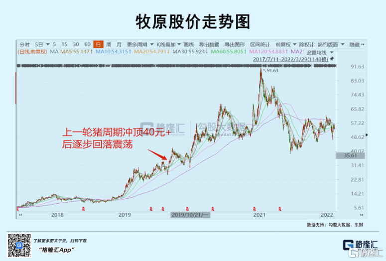豬是有周期性的。之所以叫週期股,就是因為波動大,上下振幅劇烈,容易患得患失。在週期高點,線性外推利潤的成長和行業格局,在週期低點,一大堆利空,悲觀至極。並且,股價走勢與豬價走勢會存在時間差,並不是價格漲,股價就要漲。後者邏輯更為複雜,且干擾因素較多,比如大盤表現,機構資金行業高低切換等等。