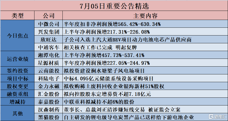 格隆匯公吿精選︱興發集團等公司上半年業績大幅預增;中通客車相關核查工作已完成,明起復牌