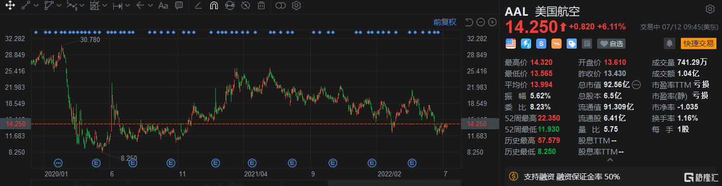 美股異動 | 美國航空(AAL.US)漲6.11% 預計第二季度營收將較2019年同期增長11%-13%