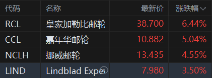 格隆匯7月20日丨美股郵輪股走高,皇家加勒比郵輪漲6.44%,嘉年華郵輪漲5.04%,挪威郵輪漲4.55%,Lindblad Expedition漲3.5%。美國疾控中心(CDC)週二宣佈,針對郵輪公司的新冠疫情防控項目正式結束,後續將繼續為該行業提供建議,但各家公司可以使用自己的策略來應對疫情。CDC此前要求所有登船遊客必須接受新冠檢測,同時鼓勵所有遊客和員工接種疫苗。