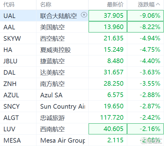 格隆匯7月21日丨聯合大陸航空跌9%、美國航空跌8%,西空航空、夏威夷控股、捷藍航空跌超4%,達美航空跌3.6%。消息面上,聯合大陸航空二季度淨利潤3.29億美元,不及分析師預期。公司預計第三季度營收將比2019年增長11%;第三季度的運力預計下降11%,而第四季度下降10%;明年航班(較2019年)增速從此前的20%下調至不超過8%。