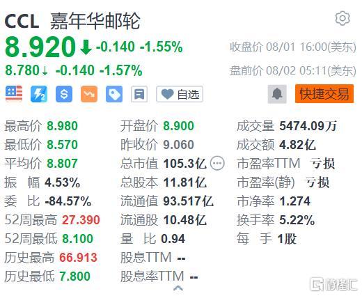 美股異動 | 嘉年華郵輪盤前走低 發行9億美元可轉換優先票據