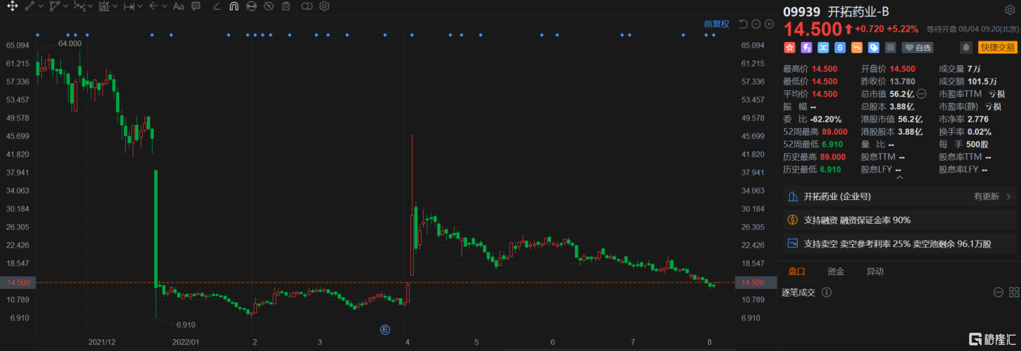 港股異動 | 開拓藥業(9939.HK)高開5.22% KX-826治療男性脱髮美國II期臨牀試驗完成患者入組