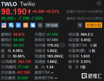 美股異動 | Twilio(TWLO.US)盤前跌7.93% 第三季度利潤指引遠遜市場預期