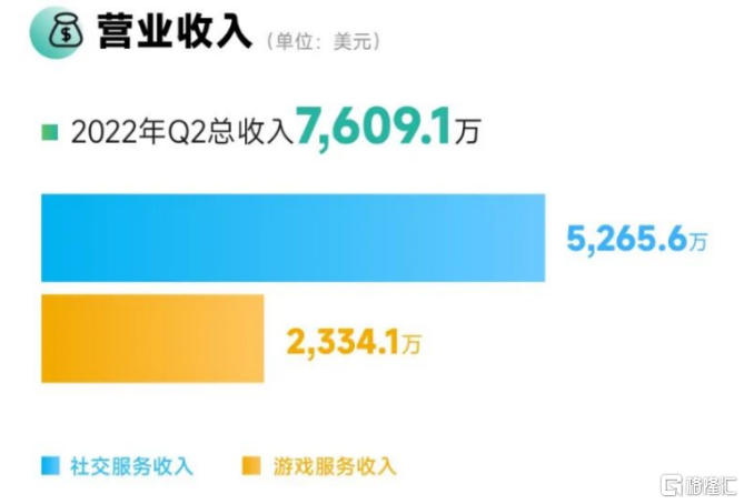 第二季度,Yalla Group錄得收入7609.1萬美元,同比增長14.2%,實現連續八個季度的創新高,並超出業績指引上限的8.7%。其中,社交服務收入為5265.6萬美元;遊戲服務收入為2334.1萬美元,同比大增45.8%。