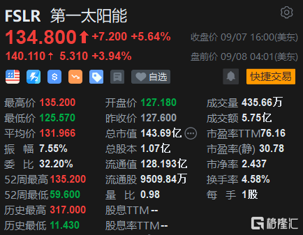 美股異動 | 第一太陽能(FSLR.US)盤前漲近4% 高盛將其評級連升兩級至買入 大幅上調目標價至172美元