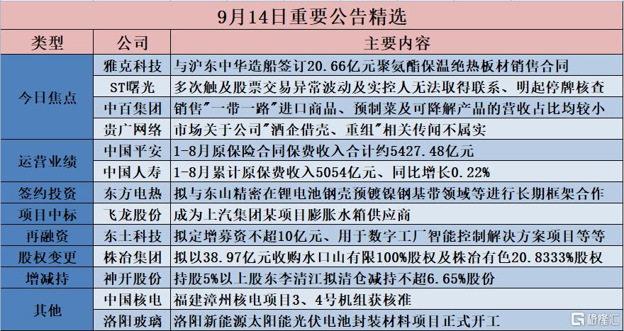 格隆匯公吿精選︱雅克科技:與滬東中華造船簽訂20.66億元聚氨酯保温絕熱板材銷售合同;中百集團(000759.SZ):銷售"一帶一路"進口商品、預製菜及可降解產品的營收佔比均較小