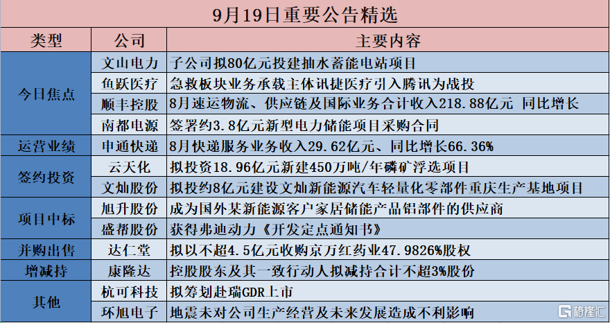 格隆匯公吿精選︱魚躍醫療子公司擬引進戰略投資者騰訊;南都電源簽署約3.8億元新型電力儲能項目採購合同
