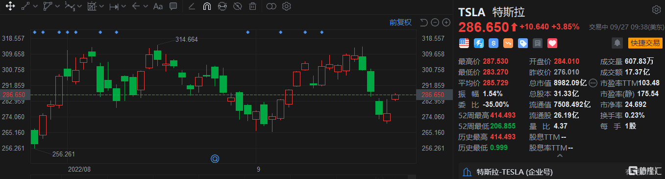 格隆匯9月27日丨特斯拉(TSLA.US)漲超4%,報287.285美元。特斯拉預計在本季度末將迎來“高成交量”。在一封寫給員工的電子郵件中,特斯拉管理層寫道: “在第三季度的最後幾天,我們將向急切等待的客户交付大量車輛。為了確保我們能讓儘可能多的客户滿意,交付團隊正在請求對關鍵交付執行任務提供額外的支持。”此外,特斯拉弗裏蒙特工廠第三季度的生產、交付量或將創新高。