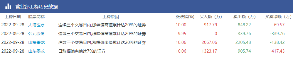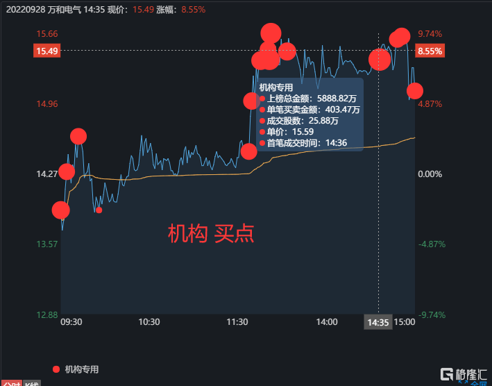 龍虎榜中涉及機構專用席位的個股中,當日淨買入額前三為萬和電氣、王府井、寶立食品,分別為5696.79萬元、3440.65萬元、3295.46萬元。