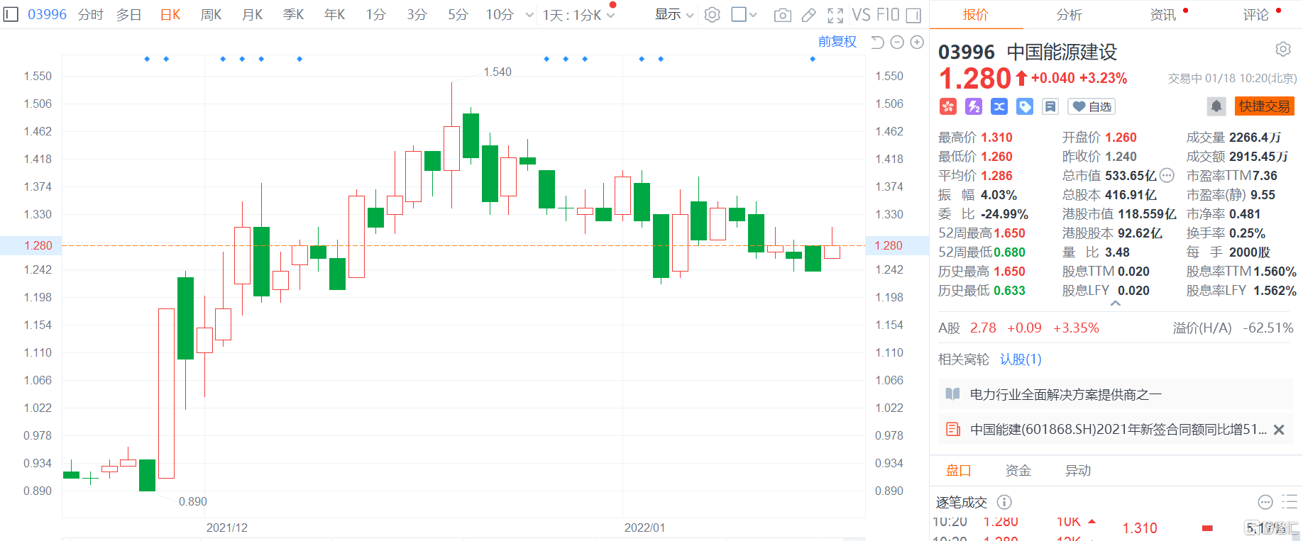 中國能源建設AH齊漲 去年新籤合同額累計8726.1億元 同比增長51%