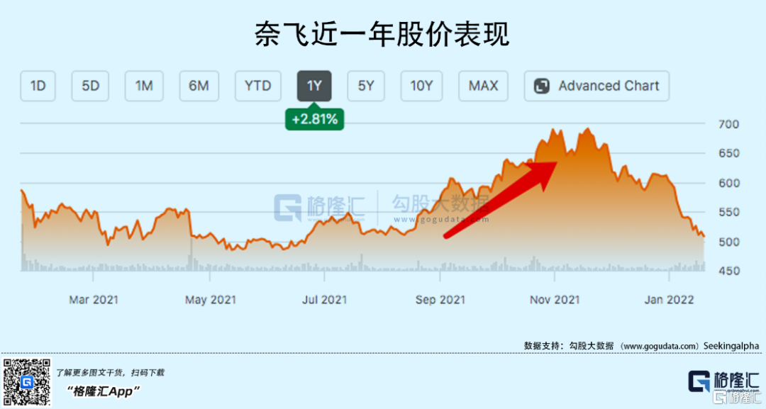 不過在爆款劇《魷魚遊戲》等推動下,奈飛股價經歷一波大漲,而這裏面主要漲的是估值(泡沫)。在Q4業績發佈,用户指引大幅低於預期的情況下,跳水的鬼故事就出現了。