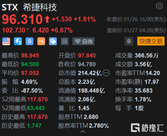 希捷科技(STX.US)盤前漲6.67% 收入利潤均超預期並上調長期利潤率區間