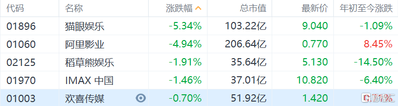 港股電影概念股集體下跌 2022年春節檔電影票房低於映前市場預期