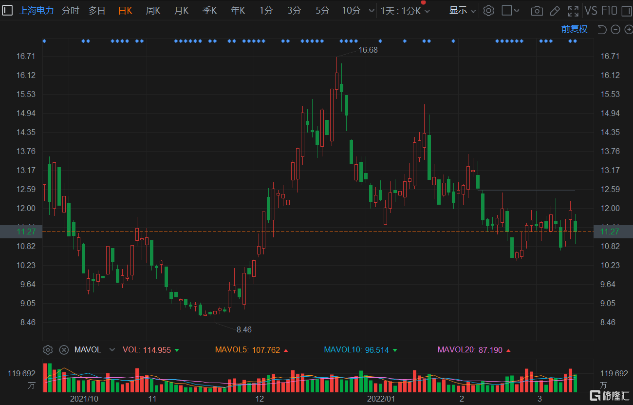 格隆匯3月11日丨上海電力(600021.SH)跌5.45%,報11.27元,暫成交13億元,總市值295億元。公司昨晚公吿,股東長江電力於2022年3月8日到3月10日減持2816萬股,佔公司總股本的1.08%。套現約3.36億元。本次權益變動後,長江電力共持有公司股份1.02億股,佔公司總股本的3.9%。