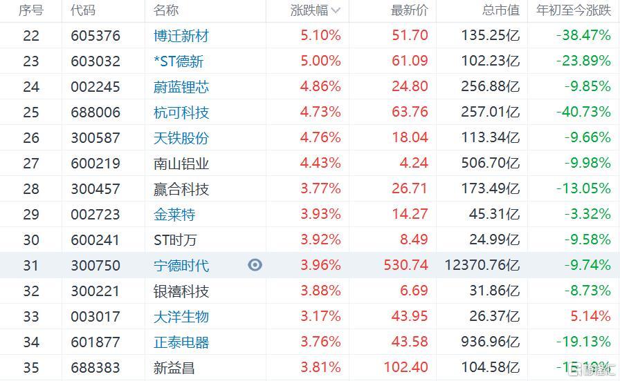 A股異動 | 鋰電池概念股集體上漲 寧德時代漲4%