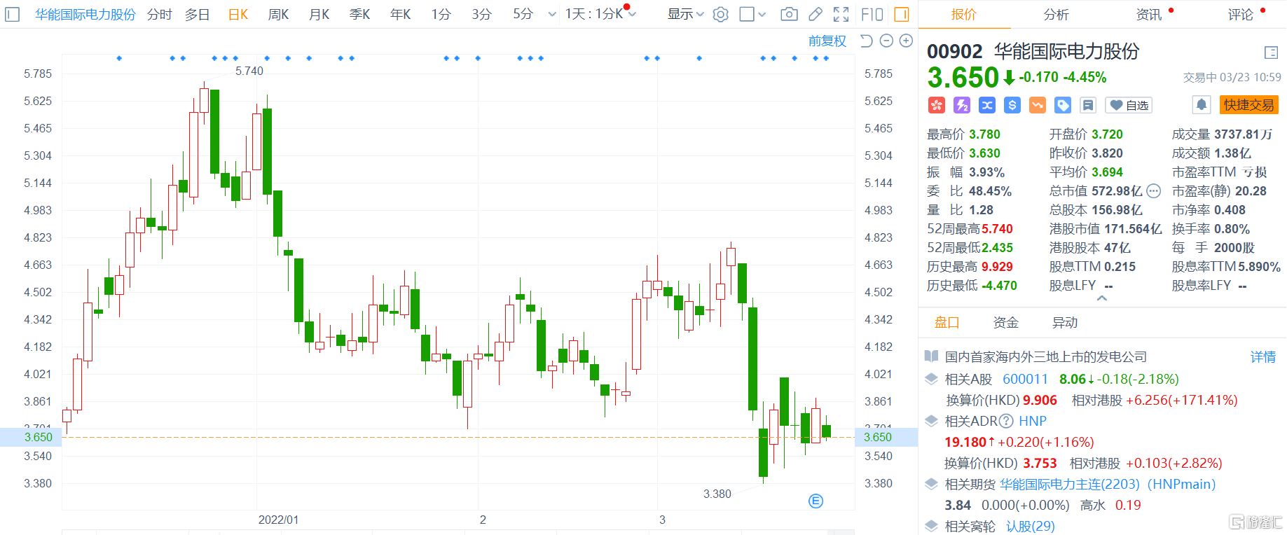 港股異動丨華能國際電力股份(00902.HK)跌4.45% 去年虧損超百億元