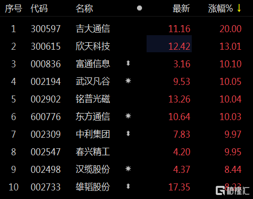 與此同時,今早5G板塊異動拉昇,吉大通信、富通信息、武漢凡谷、銘普光磁、東方通信等多股漲停,移為通信、大富科技等跟漲。