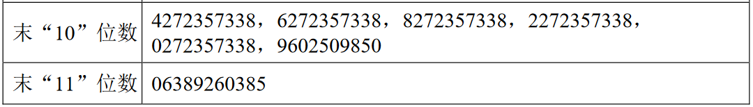凡參與“重銀轉債”網上申購的投資者持有的申購配號尾數與上述號碼相同的,則為中籤號碼。中籤號碼共有3,437,446個,每個中籤號碼只能認購1手(1000元)重銀轉債。